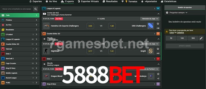 O 5888Bet oferece uma grande seleção de opções de apostas em e-sports com probabilidades competitivas